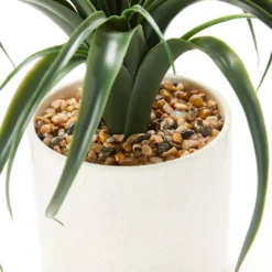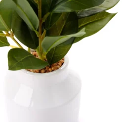 Bohemian Farmhouse Green Artificial Plant With White Patterned Pot