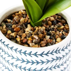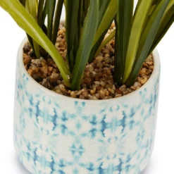 Grecian Getaway Green Artificial Greenery With White & Blue Ceramic Pot