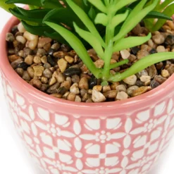 Blossom Green Artificial Succulent With Pink & White Ceramic Pot