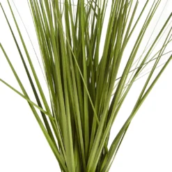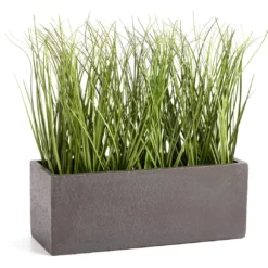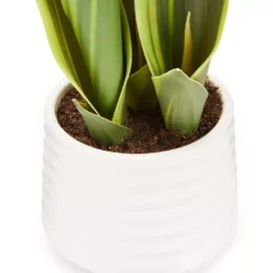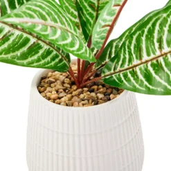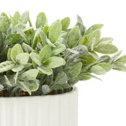 Green Artificial Leafy Arrangement With White Ridged Ceramic Pot