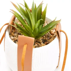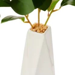 Green Artificial Leafy Stems With White Geometric Ceramic Vase