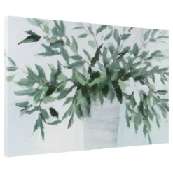 Green Artificial Eucalyptus Arrangement In Cream Stripe Ceramic Vase