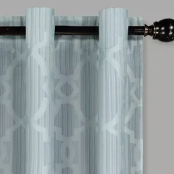 Hattie Spa Blue Floral Crushed Voile Sheer Curtain Panel, (84″)
