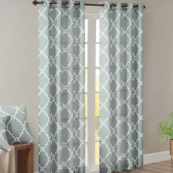 Sereno Fretwork Seafoam Light-Filtering Grommet Curtain Panel, (84″)