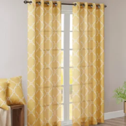 Sereno Fretwork Yellow Light-Filtering Grommet Curtain Panel, (63″)