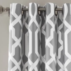 Edward Trellis Gray Room-Darkening Grommet Curtain Panel Pair, (108″)