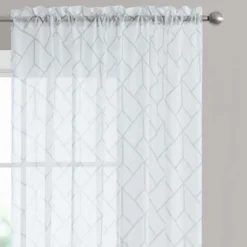 Finch Gray Geometric Crushed Voile Sheer Curtain Panel, (84″)