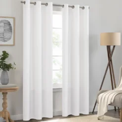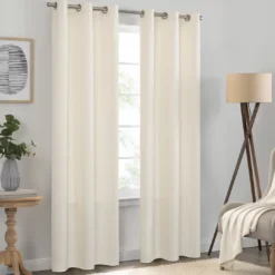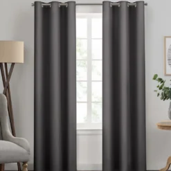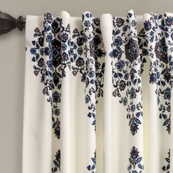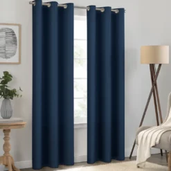 Kennett Navy Distressed Geometric Room-Darkening Grommet 4-Piece Curtain Panel Set, (84″)
