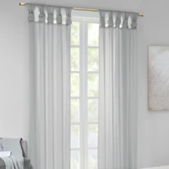 Persis Light Gray Voile Sheer Twisted Tab Curtain Panel Pair, (95″)