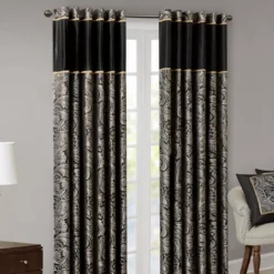 Valerie Black Light-Filtering Rod Pocket Curtain Panel Pair, (95″)