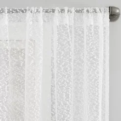 Tinsley White Boucle Light-Filtering Rod Pocket Curtain Panel, (84″)