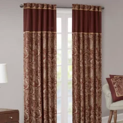 Valerie Burgundy Light-Filtering Rod Pocket Curtain Panel Pair, (95″)