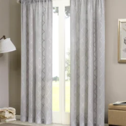 Clarissa Diamond Ivory Sheer Rod Pocket Curtain Panel, (84″)
