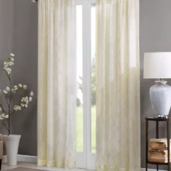 Clarissa Diamond Ivory Sheer Rod Pocket Curtain Panel, (95″)