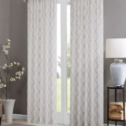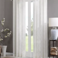 Clarissa Diamond White Sheer Rod Pocket Curtain Panel, (84″)