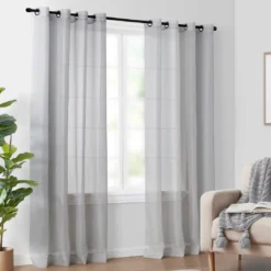 Curtain Fresh Light Gray Sheer Grommet Curtain Panel, (108″)
