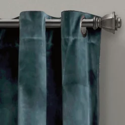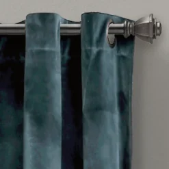 Prima Velvet Slate Blue Room-Darkening Grommet Curtain Panel Pair, (95″)