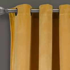 Prima Velvet Yellow Room-Darkening Grommet Curtain Panel Pair, (84″)