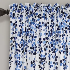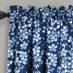 Weeping Flowers Navy Room-Darkening Rod Pocket Curtain Panel Pair, (84″)