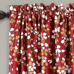 Weeping Flowers Red Room-Darkening Rod Pocket Curtain Panel Pair, (84″)