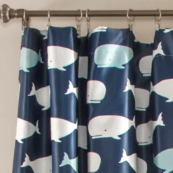 Whale Navy Room-Darkening Rod Pocket Curtain Panel Pair, (84″)