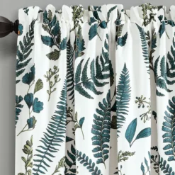 Devonia Allover White & Green Floral Room-Darkening Rod Pocket Curtain Panel Pair, (95″)
