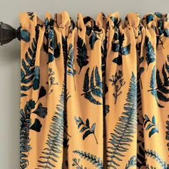 Devonia Allover Yellow & Blue Floral Room-Darkening Rod Pocket Curtain Panel Pair, (95″)