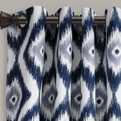 Diamond Ikat Navy Room-Darkening Grommet Curtain Panel Pair, (84″)