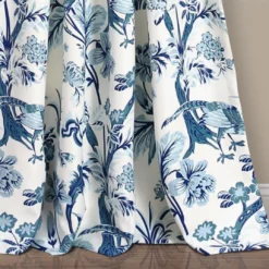 Devonia Allover White & Green Floral Room-Darkening Rod Pocket Curtain Panel Pair, (84″)