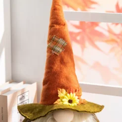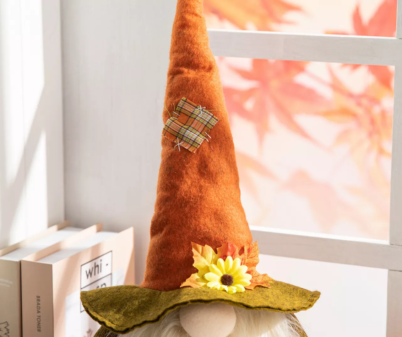 Bring harvest charm into your home with this plush gnome. This fabric design with an orange hat and white beard is in a charming standing position that’s perfect for display on any tabletop, shelf or counter. A fun figure that’s perfect as a gift or to decorate your own home.