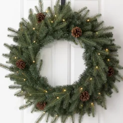Bring wonderful seasonal charm to your home using this wreath. Classic pine branches in varying lengths adorn its design with pinecones as it illuminates from warm white LED lights. It’s a marvelous addition to your seasonal decorations.