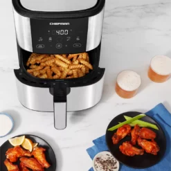 Finally an air fryer that has it all. The Chefman TurboFry Touch makes mastering weeknight meals easier than ever. With effortless one-touch digital control and four built-in cooking functions, you can cook your favorite foods to the perfect fried finish, every time. No matter if you’re in the mood for crispy chicken, a medium-rare ribeye or golden fries, this appliance helps you cook with confidence. The adjustable temperature and the ability to add or subtract time allows you to tailor your air frying. Worried about overcooking? An LED reminder tells you exactly when it’s time to give your food a shake to ensure even cooking, every time. Air frying for the family has never been so convenient. The nonstick five-quart basket capacity allows you to feed a whole crowd, while still maintaining a compact footprint on your countertop. The sleek, stainless steel exterior wipes down simply with a damp cloth and the accessories can be tossed right in the dishwasher.