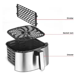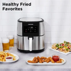 Air fry healthy, family-sized meals with the Chefman TurboFry Touch Air Fryer. With an Dual Basket capacity and a convenient built-in divider, you can whip up whatever your crowd is craving. The divider allows you to air fry two different foods at once, whether that be veggies, fries, chicken or pizza. Four convenient presets, intuitive digital touch control, and adjustable temperature allow you to easily cook your food to crispy perfection. The LED shake reminder and rapid-air technology ensure even cooking, every time. When you’re done cooking, simply wipe down the stainless steel exterior with a damp cloth, and put the dishwasher-safe and non-stick basket on the top rack. This appliance is compact, simple to store, and will display beautifully on your countertop.