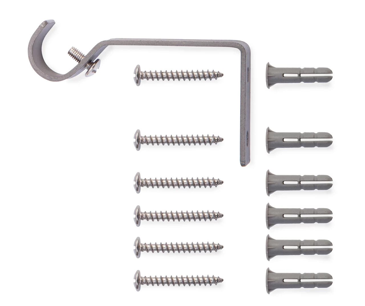 - Includes telescoping curtain rod, center support, screws and drywall anchors