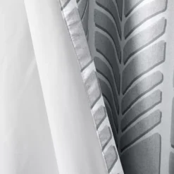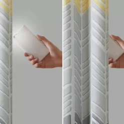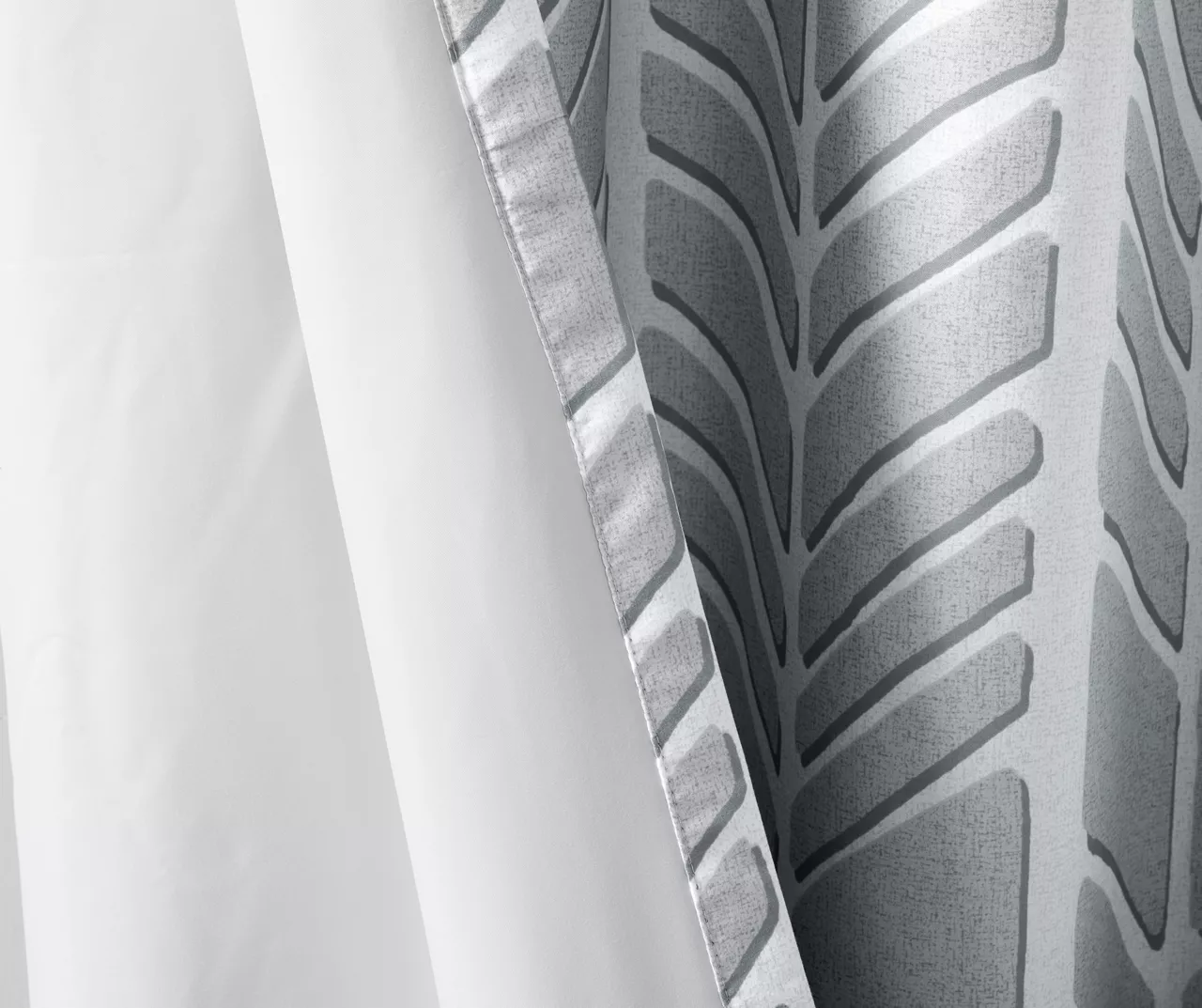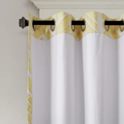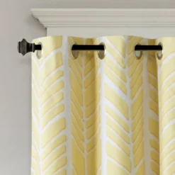 Create a color blocked look in your room with the Amanda blackout window panel. This geometric chevron design uses light gray, taupe and aqua for a unique combination of color and pattern. Added foamback lining provides superior room-darkening features, added privacy and energy efficient abilities. Finished with grommet top detail.