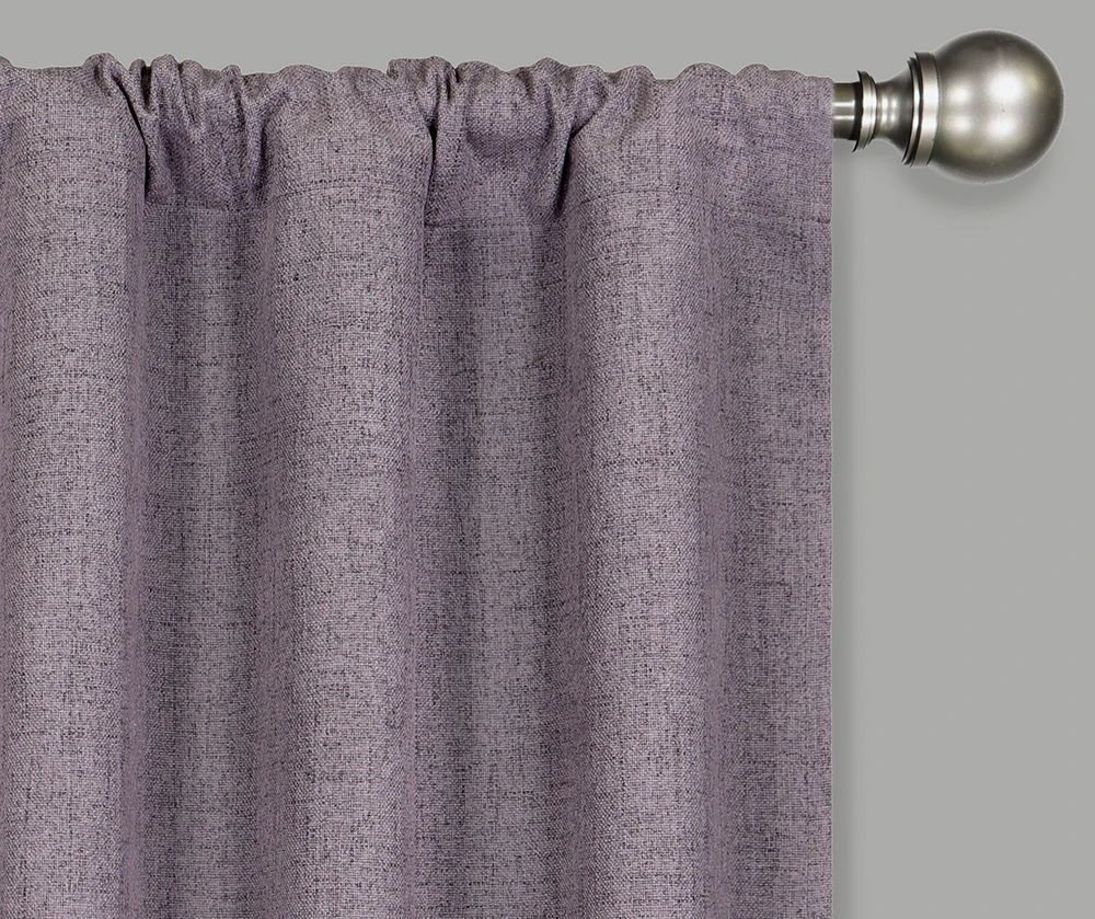 Find the perfect combination of fashion and function with the Eclipse Anya window curtain panel pair. These beautiful panels offer Absolute Zero 100% blackout benefits and feature a tonal basketweave fabric in a plum purple hue. The innovative foam backing is applied to the fabric and allows you to enjoy all of the light-blocking, noise reducing and energy saving benefits. Providing the same fashionable style and elegance of naturally flowing curtains, they’re great for a bedroom, living room or any other space in your home.