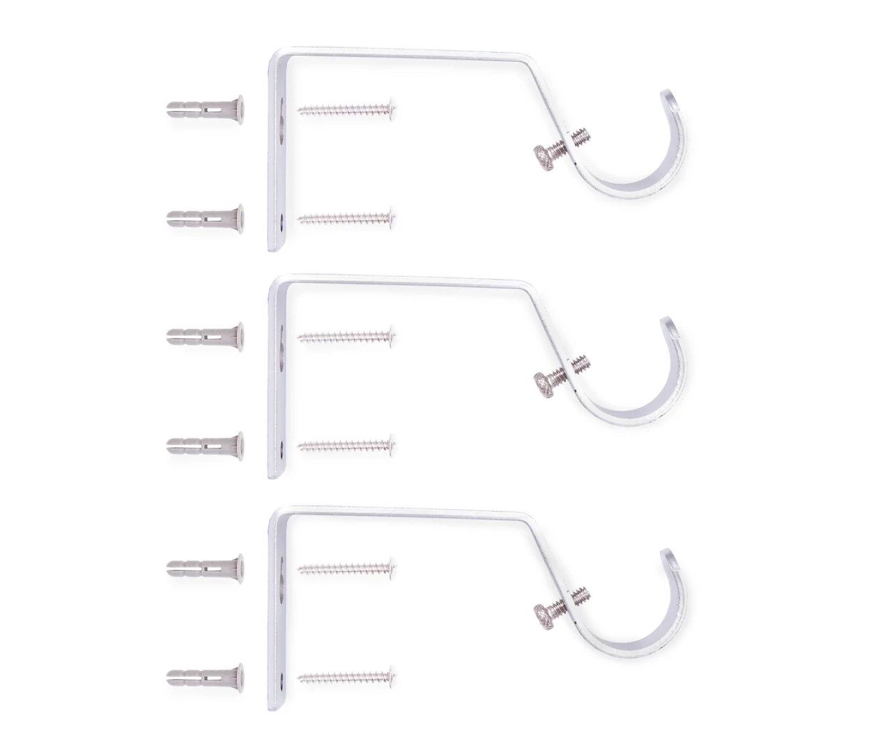 - Includes telescoping curtain rod with finials, 2 – brackets, center support, screws and drywall anchors