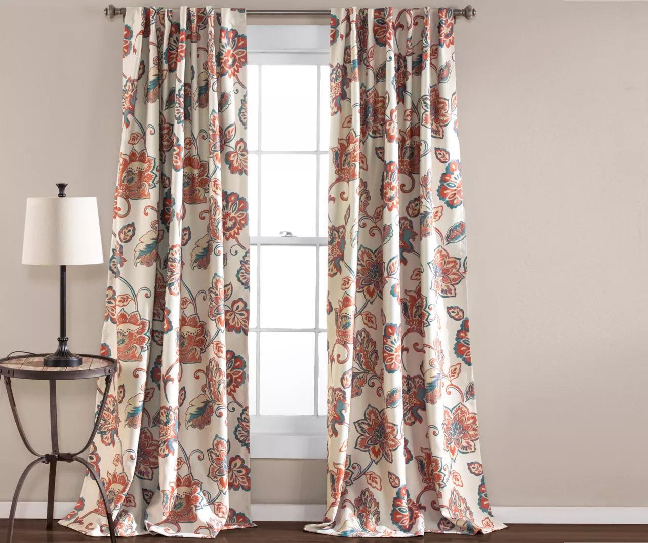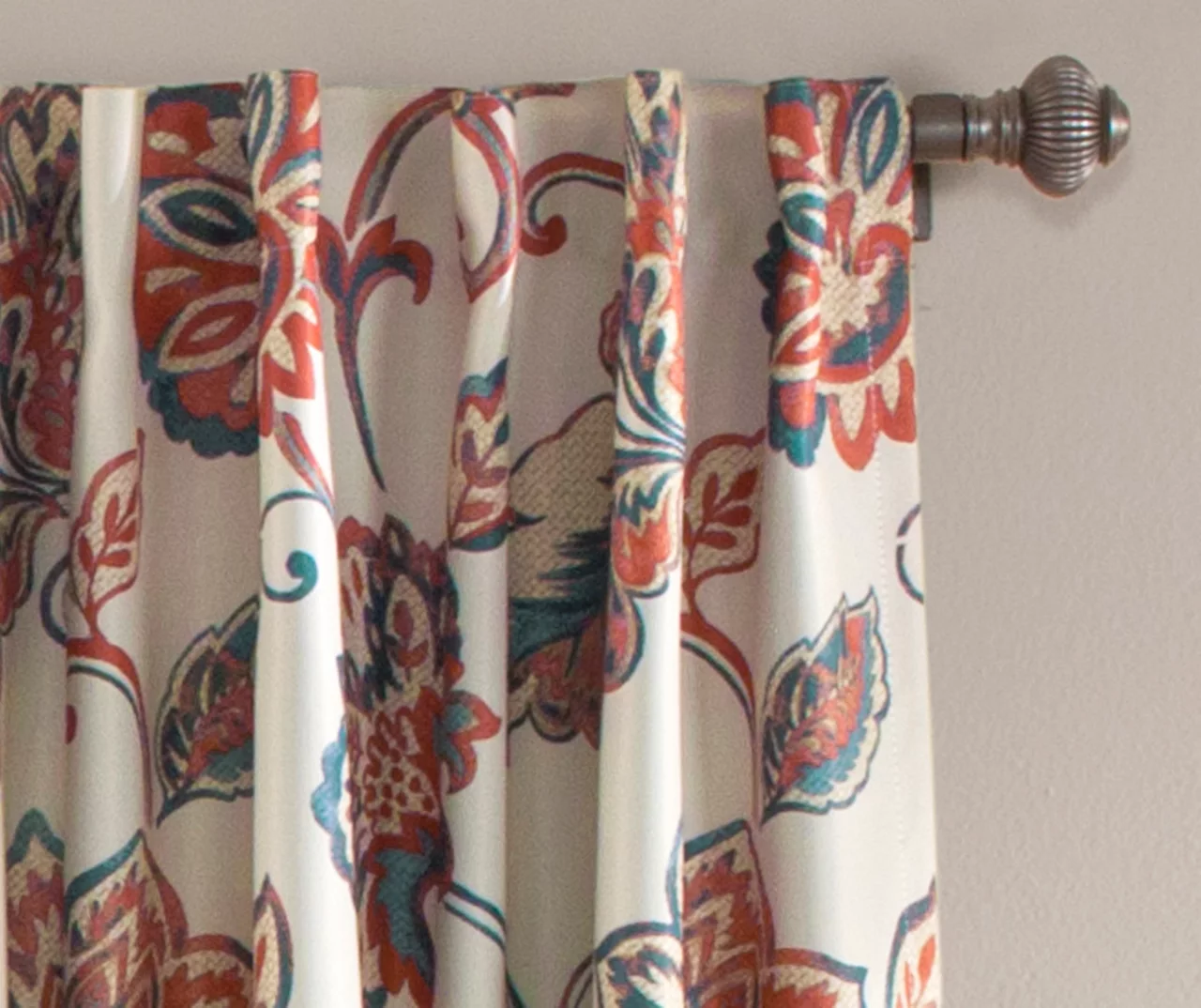 Enhance any room of your home with fun contemporary red and blue florals. These energy-efficient room-darkening window curtains block sunlight, which leads to better temperature regulation of the room. Hang them anywhere you could use a finishing touch of color and pattern.