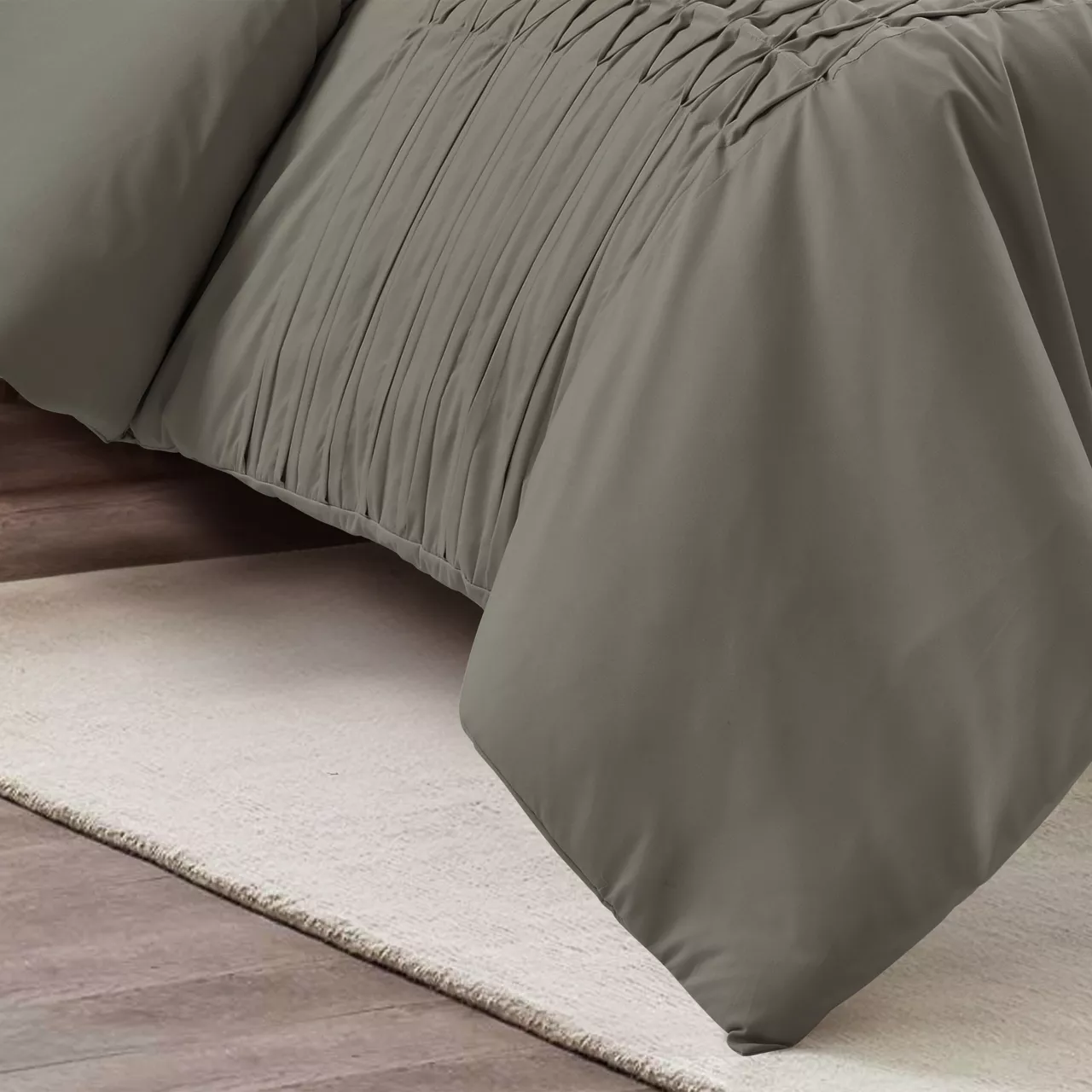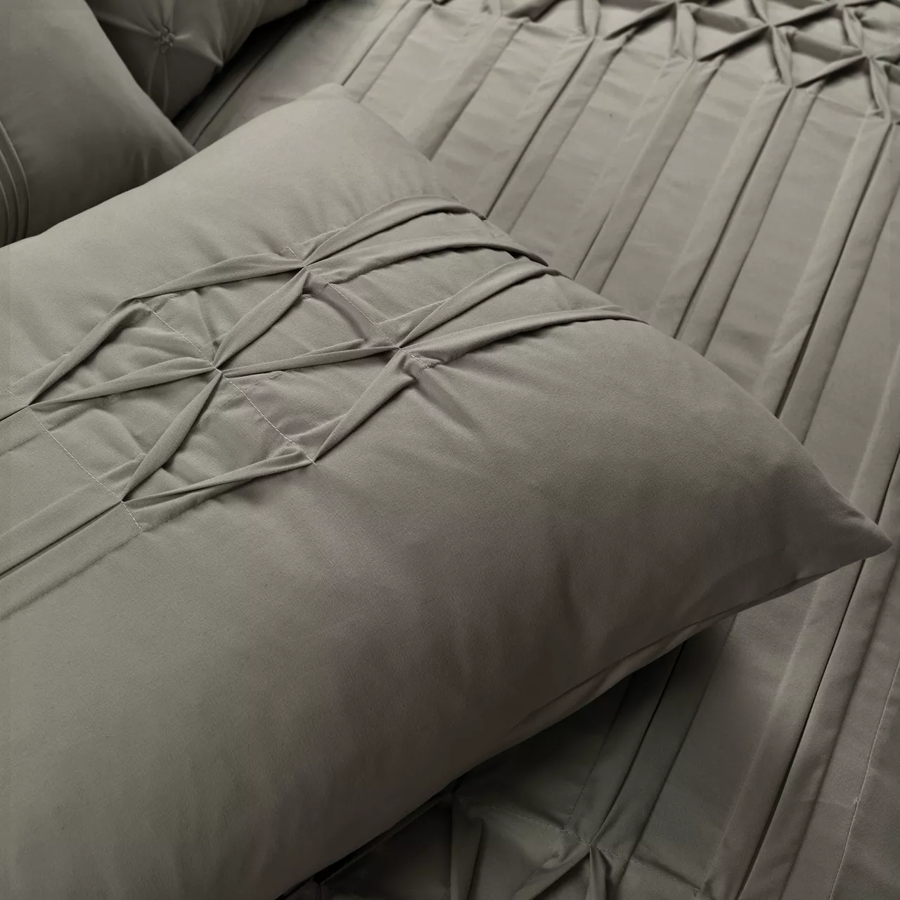 Pleats and pintucking bring sophisticated textured style to this cozy bedding set that evelops you in soft comfort through the night. The solid gray hue is easy to fit into a variety of décor styles.