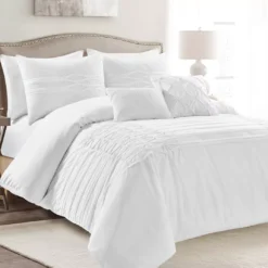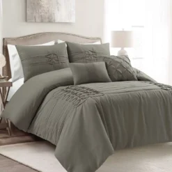 Pleats and pintucking bring sophisticated textured style to this cozy bedding set that evelops you in soft comfort through the night. The solid beige hue is easy to fit into a variety of décor styles.
