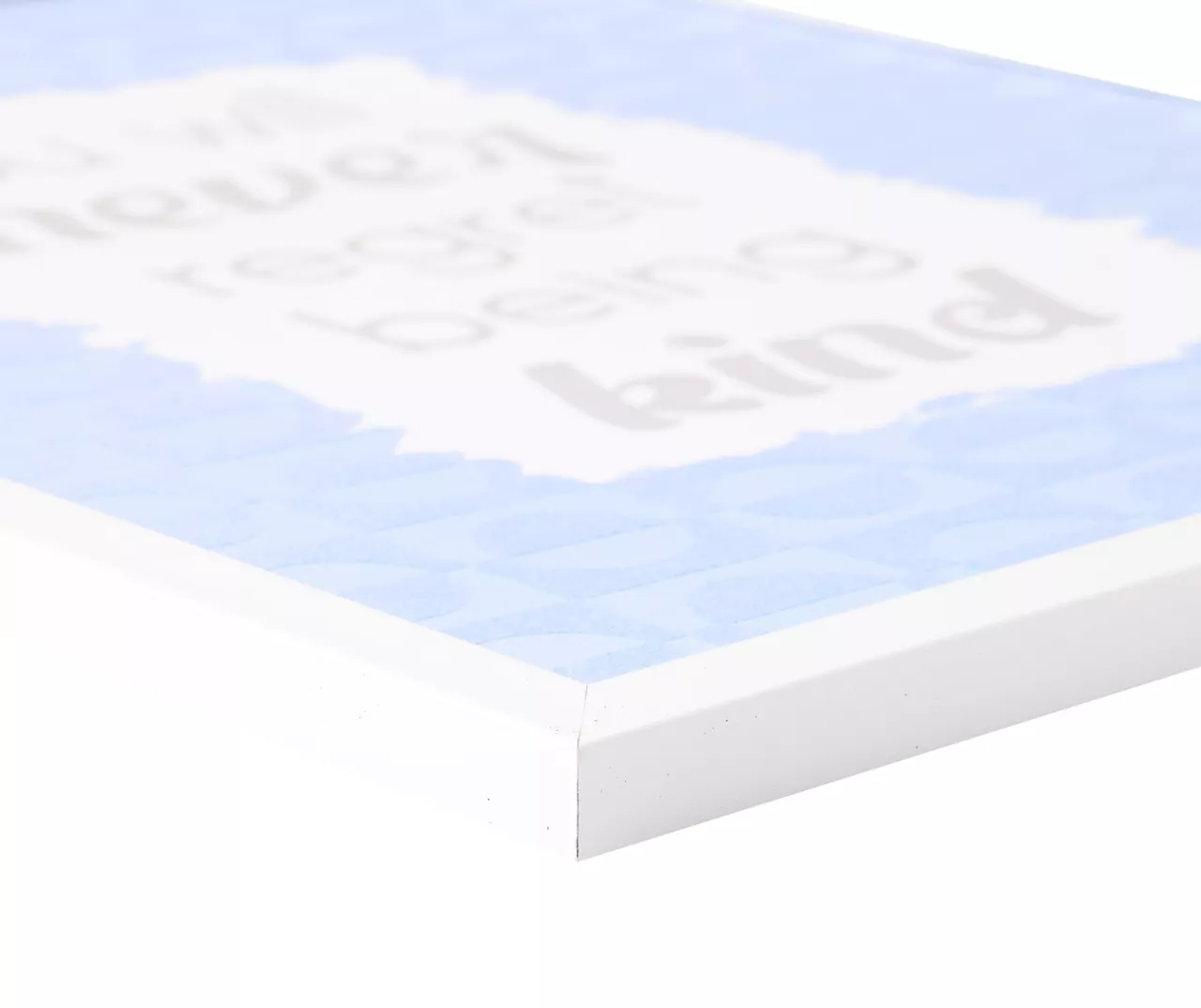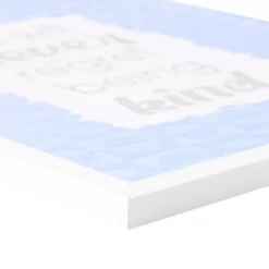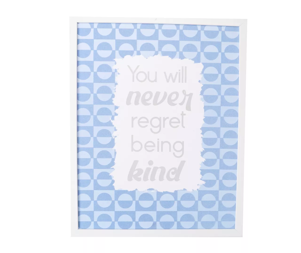 Flaunting velvety texturing over a blue circle and square patterned background, this wall plaque brings a little dynamic modern style with an uplifting message. A simple white frame completes the look and sawtooth hardware on the back makes installation quick and easy.