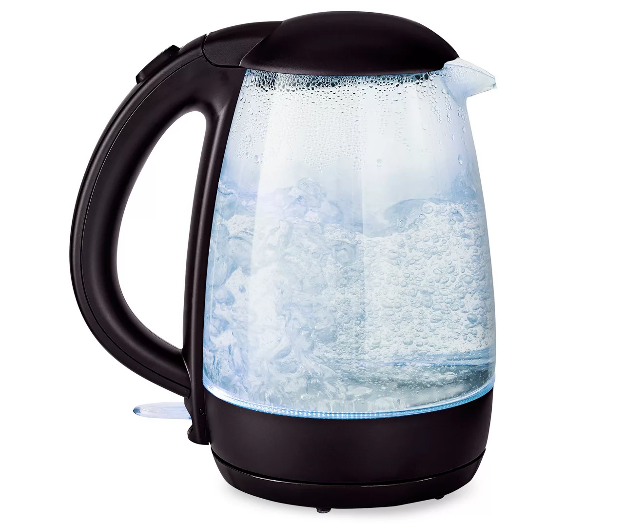 Tea time will be a breeze in your home or office with the 1.7-liter illuminated glass kettle from Bella. The cordless, 360 degree, one touch operation makes for easy filling, boiling, and serving all in one. The 1500 watt boiling system will bring 7 cups of water to a boil in mere minutes. Enjoy fast heat up time so you don’t have to wait to enjoy your warm favorites like hot tea, hot chocolate, ramen noodles or instant oatmeal. The carefree auto shut off and boil dry protection provide added safety. It glows with a soft blue illumination while boiling water to make you aware that it is on.