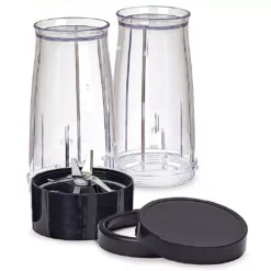 - Includes blender base, 2 – large blending jars, 1 – blending cup, 1 – storage lid and 1 – lip lid