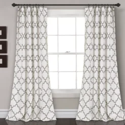 - Room-darkening curtain panels help filter out sunlight and provide privacy