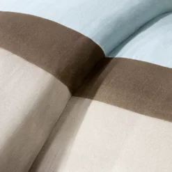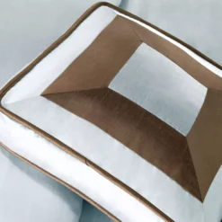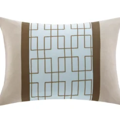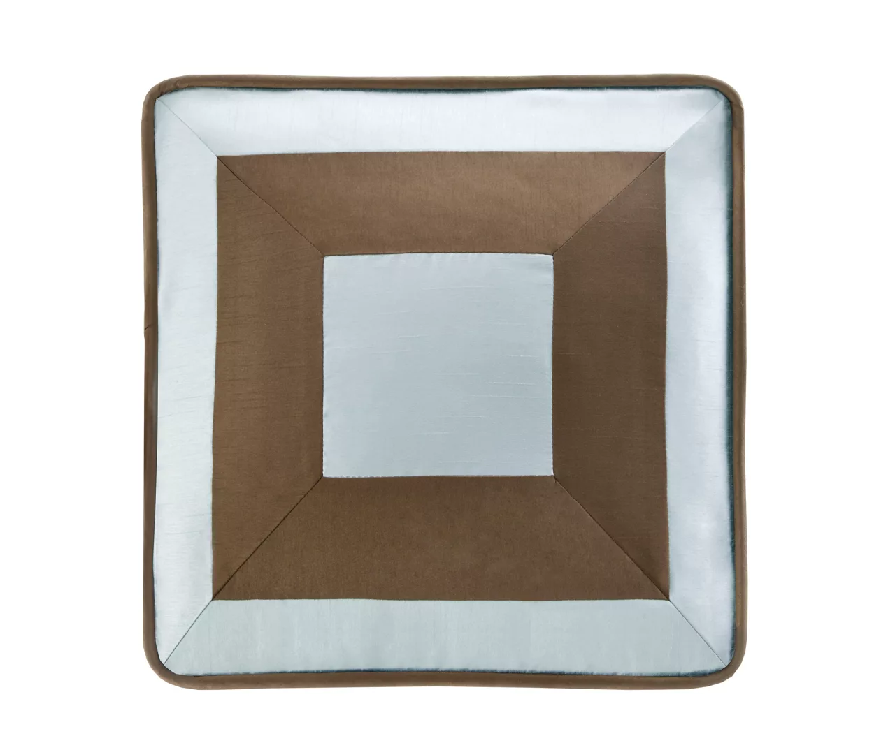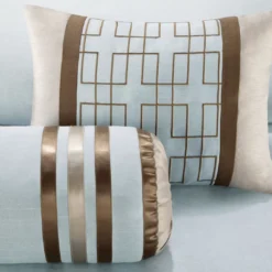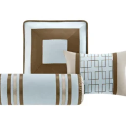 The Beverly bedding collection creates a neutral feel to your space with a nice light blue to add some color. This set is made from polyester polyoni creating a sheen to the brown, taupe and blue colorways in this bed. The taupe color creates a large border around the edge of the comforter and a brown border is used inside to give the blue a pop in the center. The decorative pillows make use of these same borders and colors for a completely matching set while the chocolate brown bed skirt adds some drama with its dark coloring. With these neutral colorways and large borders, this set will be easy to accessorize in any room in your home.