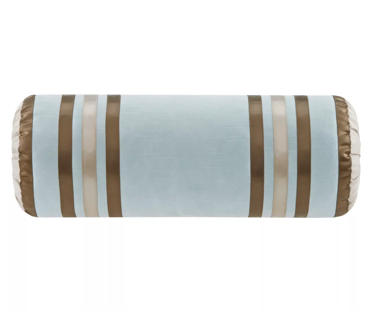- Intricate ribbon and textured detailing on the decorative pillows to complement the bedding