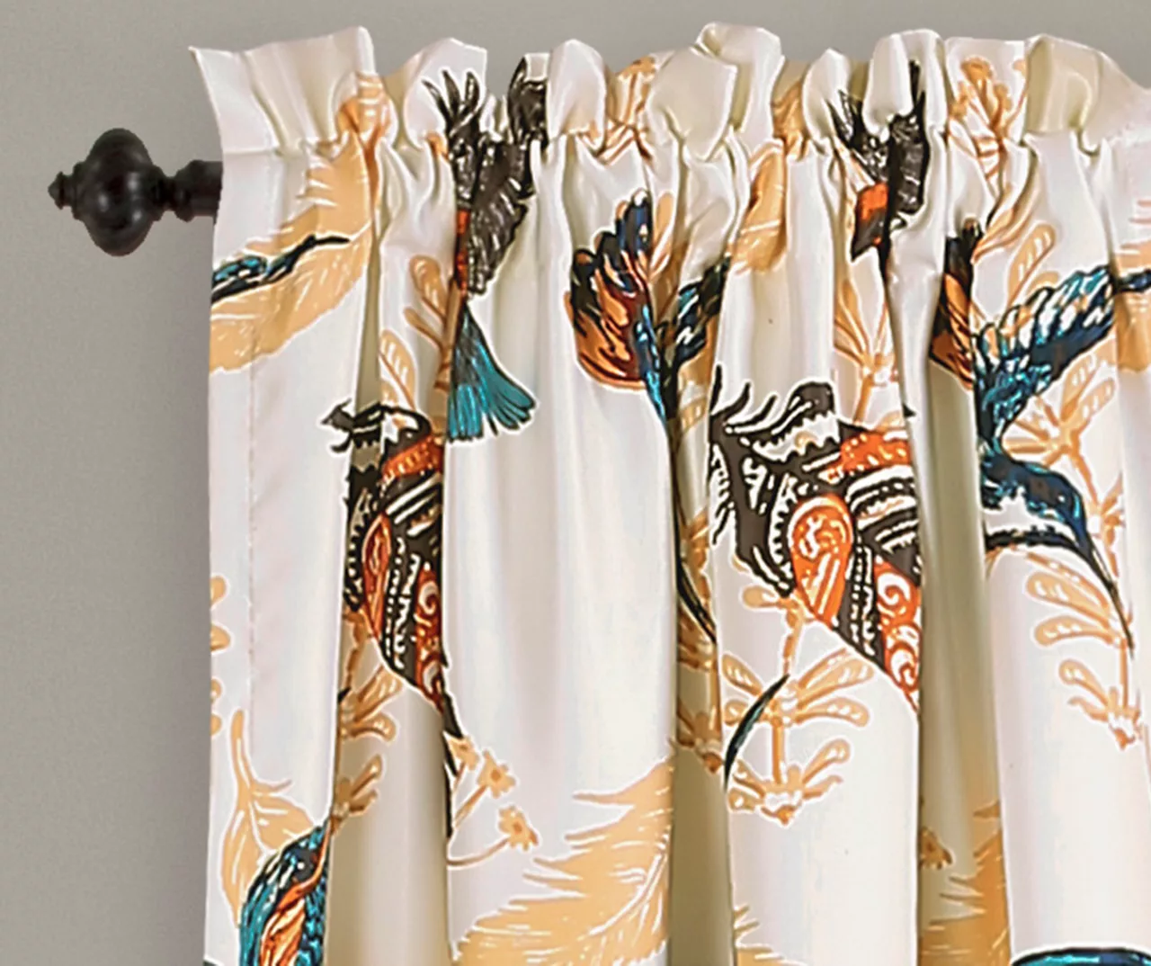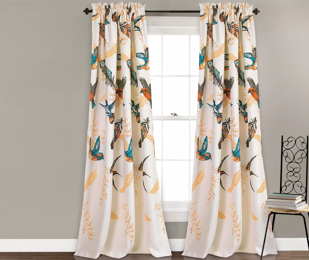 These Bird Breeze window panels combine colorful birds of flight and floating feathers against a backdrop of muted feathers. In addition, the room-darkening function helps filter out sunlight and provide privacy. Hang these panels anywhere you could use a finishing touch of cheerful color and nature-inspired pattern.