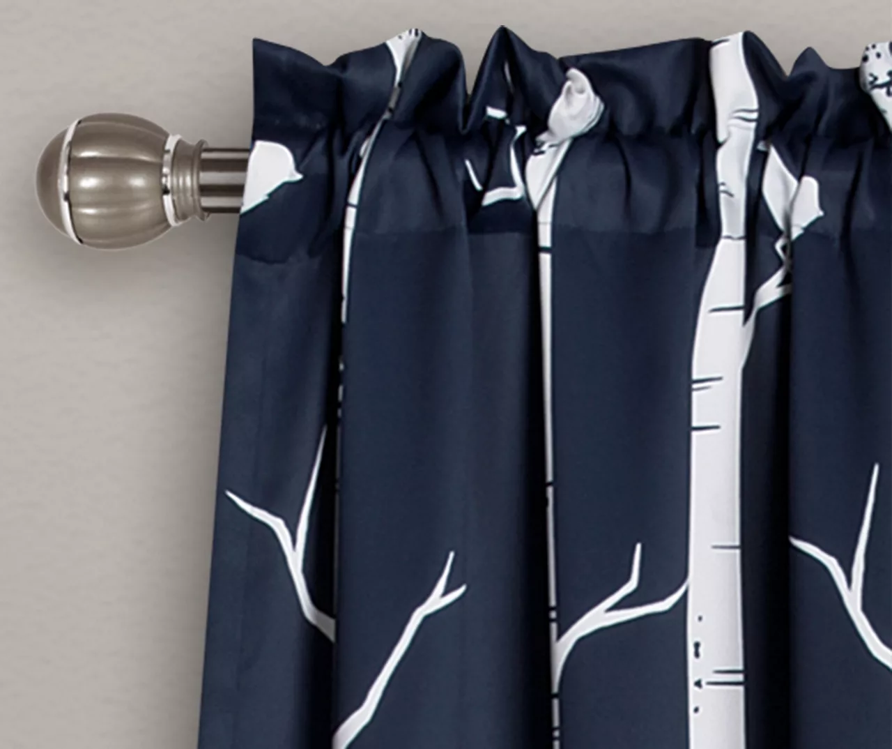 - Room-darkening curtain panels help filter out sunlight and provide privacy