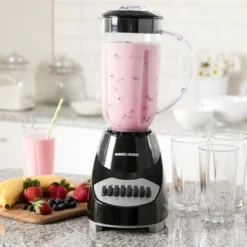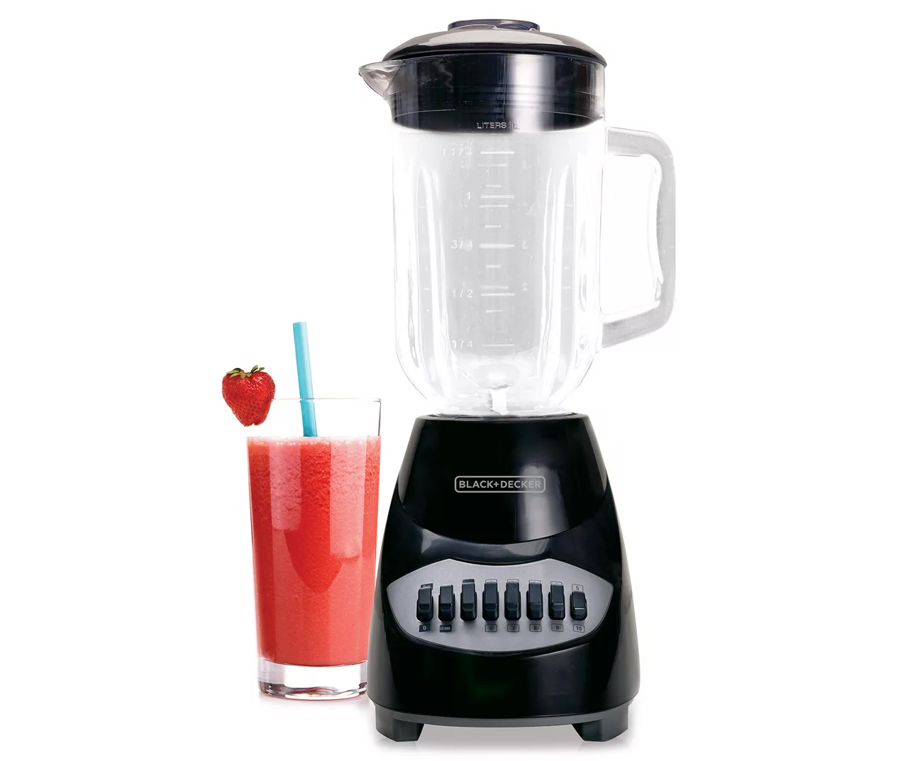 This high performance Black & Decker 10-speed blender processes your favorite foods and beverages. This essential kitchen appliance features 350-watts of power and can be placed on a counter, shelf, or table for easy access. 10 speed settings allow you to create a variety of recipes with just the right texture and consistency. Easily chop, blend or puree with its powerful blades that pulverize and liquefy frozen fruit and ice within mere seconds.