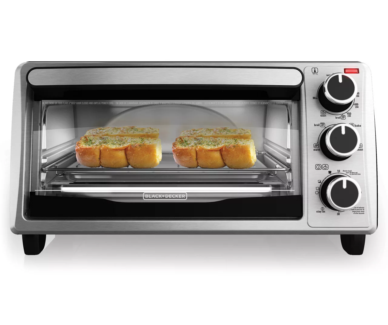 Cook tasty meals or delicious breakfast bagels with this convenient toaster oven from Black & Decker! A bake pan for delightful personal pizzas and a broil rack for mouthwatering garlic bread makes this easy-to-use oven is a counter kitchen saver. Features multiple cooking modes for all your culinary needs.
